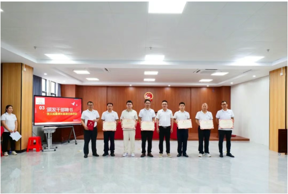 为强化干部队伍建设、提升整体工作效能,集团经研究决定,聘任一批优秀教师担任管理岗位。大会现场,张义成董事长宣读集团任命决定,随后进入隆重的聘书颁发环节。