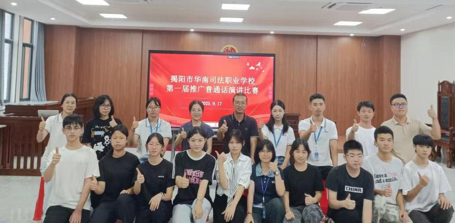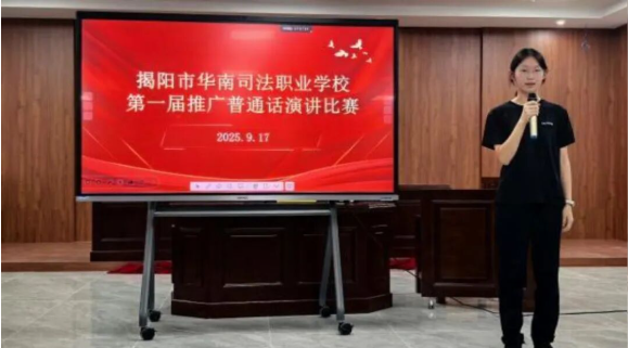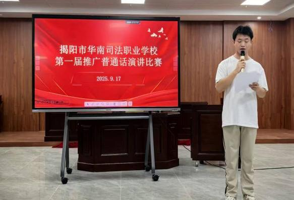 为深入贯彻落实第28届全国推广普通话宣传周精神,响应“加大国家通用语言文字推广力度,促进铸牢中华民族共同体意识”的号召,9月17日下午,我校在行政楼四楼模拟法庭实训室成功举办第一届普通话演讲比赛。本次比赛由教研处牵头,语文学科组配合完成,各班级推选优秀选手参与,现场气氛热烈,展现了华南学子良好的语言素养和精神风貌。