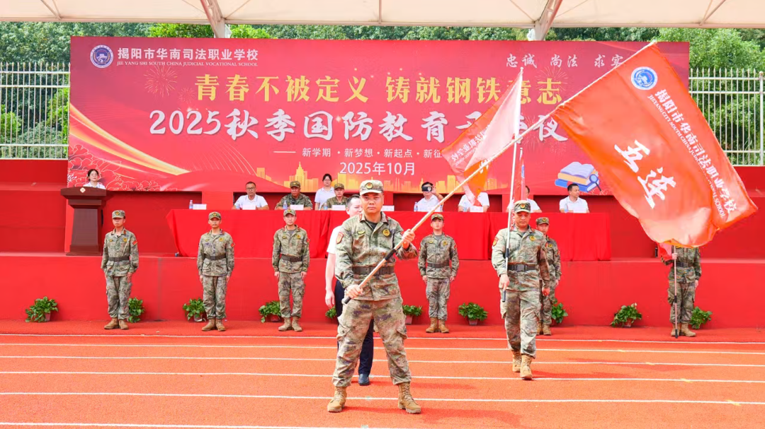 秋高气爽、戎装待发。在这充满朝气与希望的季节里,揭阳市华南司法职业学校迎来了2025年秋季国防教育开营仪式。