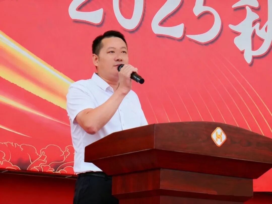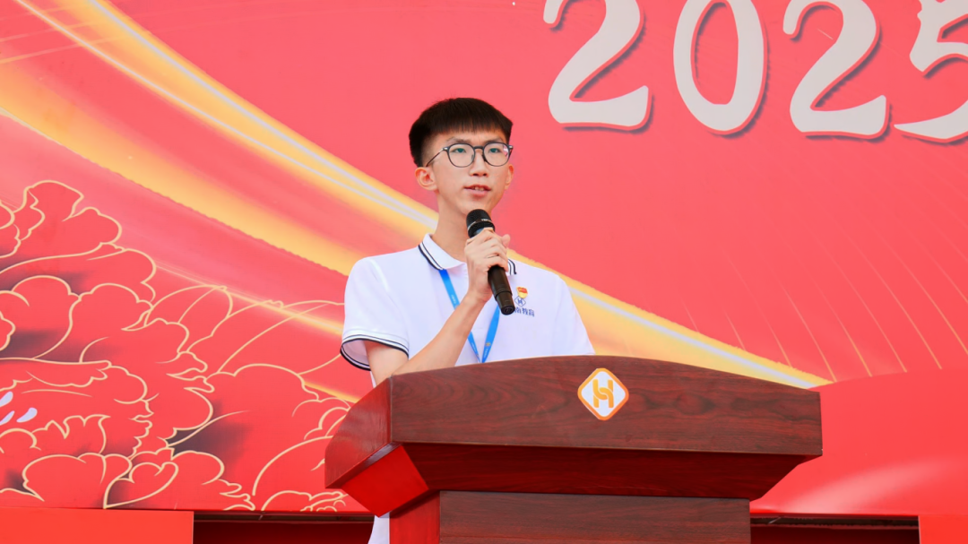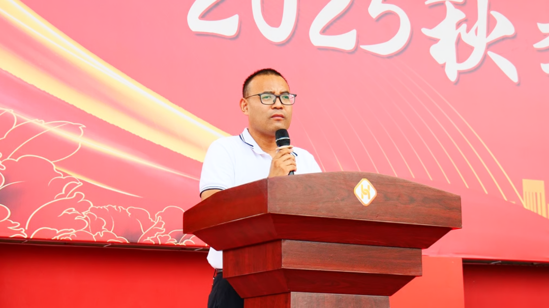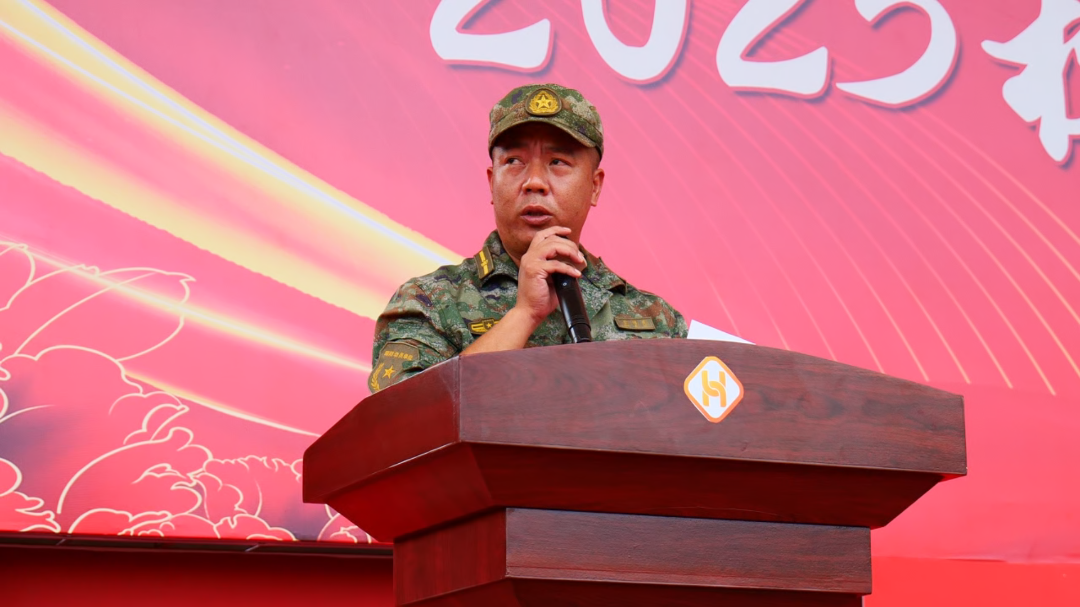 杜佳老师作为教师代表发言。他表示,教师团队将全力配合教官开展工作,关注学生训练与生活,帮助大家克服困难、适应训练节奏。同时,他鼓励学生们珍惜本次国防教育机会,在训练中挑战自我、突破自我,将训练中收获的精神品质融入未来的学习与生活中。