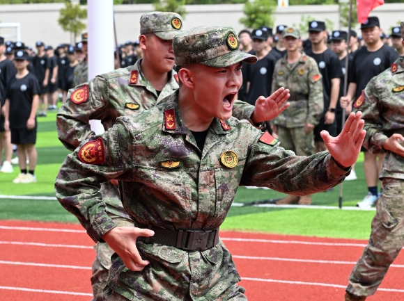 在全场师生的期待中,承训教官团队带来了精彩的军事技能展示。队列训练、战术动作、擒拿格斗…… 教官们动作标准、气势如虹,每一个招式都展现出军人的过硬本领与飒爽英姿。整齐划一的动作、铿锵有力的呐喊,赢得了现场师生的阵阵欢呼与掌声,也让学生们对接下来的训练充满向往。