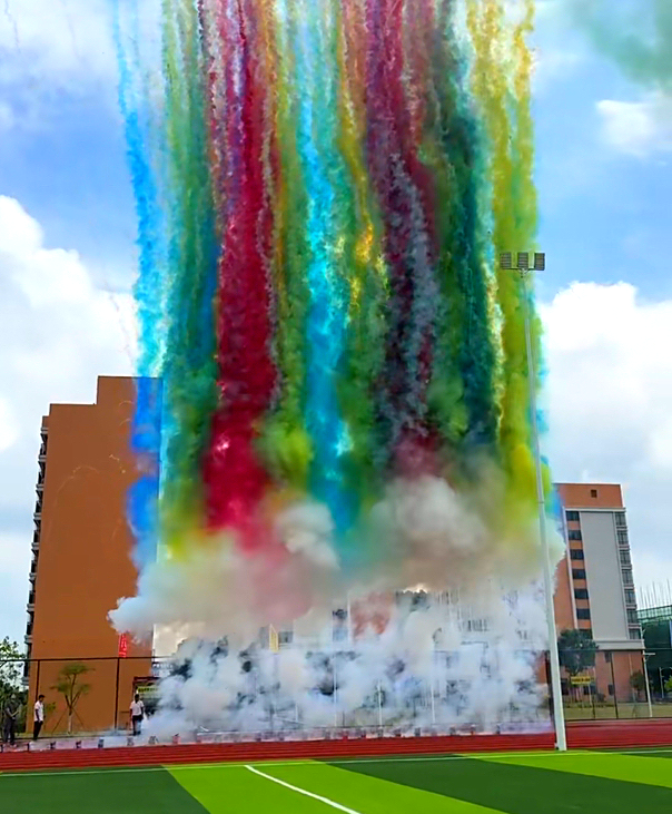 我宣布:揭阳市华南司法职业学校2025年秋季国防教育正式开营!” 随着张义成董事长的一声宣布,现场礼花绚烂绽放,五彩的礼花在空中划出美丽的弧线,将仪式气氛推向高潮。
