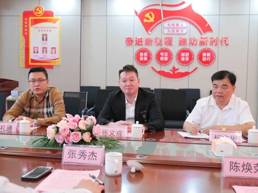 在学校会议室,张书记与校领导班子进行了座谈交流会议。揭阳市华南教育投资有限公司董事柯文彬为张书记一行介绍学校概况;揭阳市华南教育投资有限公司董事长张义成将国家教育发展战略与我校实际情况相结合,为张书记介绍学校的发展历程、办学理念等。