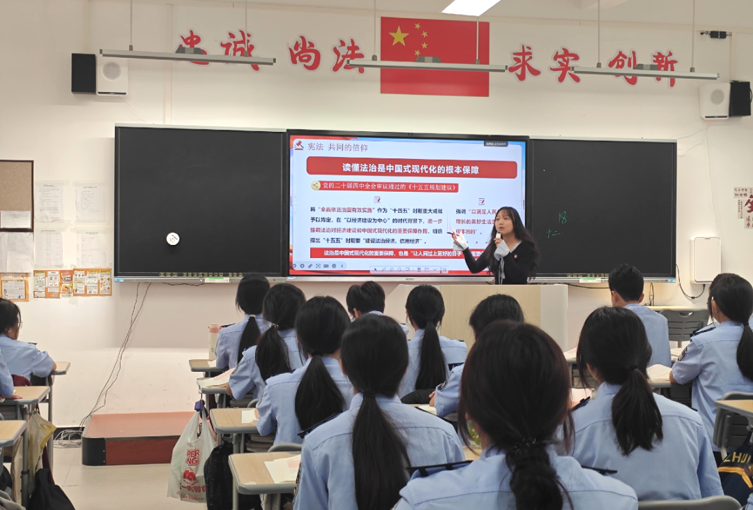 “作为司法学校的师生,我们应当做学习宪法、尊崇宪法、遵守宪法、维护宪法、运用宪法的表率,这是我们的责任,也是我们的使命。”书记的讲话掷地有声,在师生中引起强烈共鸣。课堂上,一张张专注的脸庞、一次次坚定的回应,不仅藏着师生对宪法知识的热切渴求,更见证着法治信仰在每个人心中悄然萌芽、逐渐扎根。