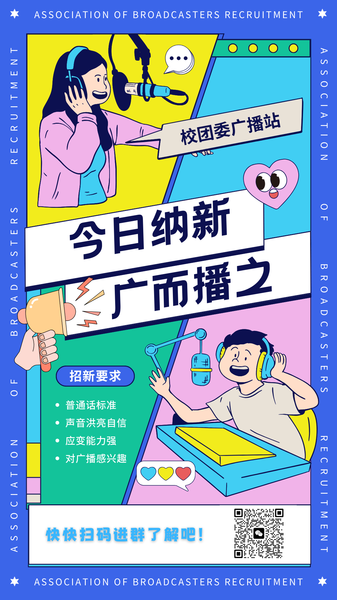 这里是校园的“声音窗口”,这里是青春的“表达平台”!校团委广播站招新火热开启,无需专业门槛,只要你对声音有热情、对校园有热爱,就能在这里收获成长与伙伴,快来报名,让你的声音被全校听见!