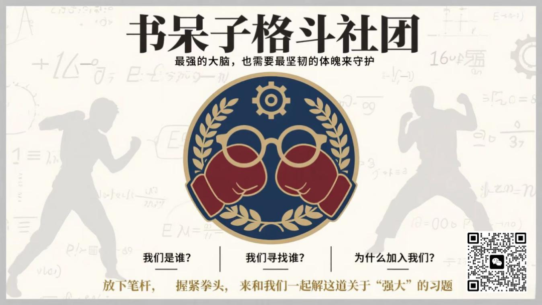你是否曾沉醉于公式定理的严谨之美,也向往着身体在运动中爆发的力量之感?你是否觉得图书馆和格斗场并非世界的两极,而是完善自我的两种途径?如果是,那么欢迎回家——书呆子格斗社团,正是为你这样的“跨界学者”而存在。