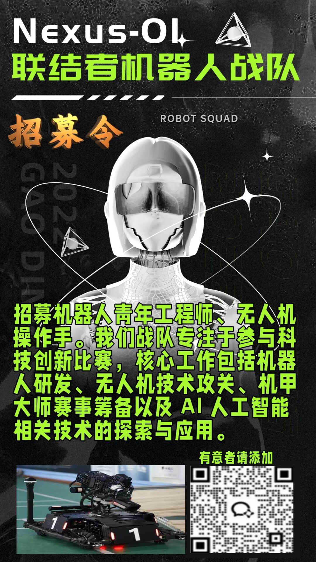 本战队为校园科技社团,核心任务是代表学校征战科技创新类比赛、数智竞技机械竞赛及其他科技赛事。现重点招募青年工程师,同时开放无人机操作员、研发、AI人工智能机器人、机甲大师相关岗位,期待热爱科技的你加入,共同征战赛场。