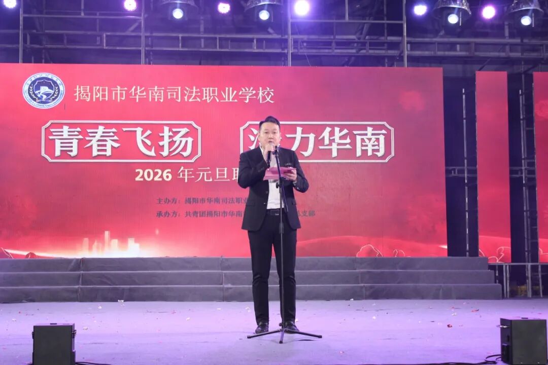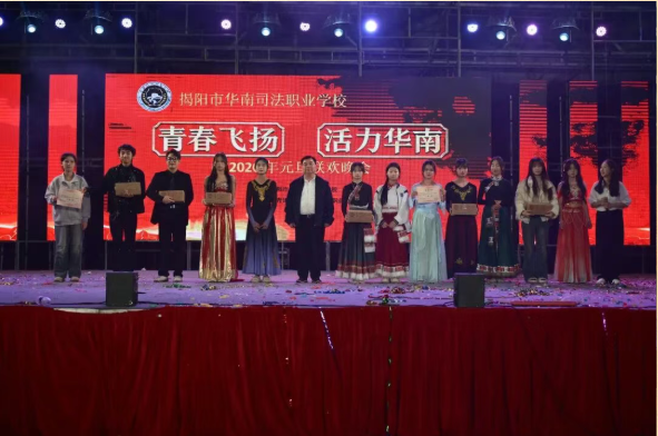 骏马嘶风辞旧岁,龙骧虎步启新程。12月30日,揭阳市华南司法职业学校“青春飞扬,活力华南”贺元旦迎新年联欢晚会在璀璨灯光中盛大启幕。全校师生欢聚一堂,以歌舞传情、以才艺献礼,共赴这场辞旧迎新的青春盛宴,共度这个热血与温情交织的夜晚。