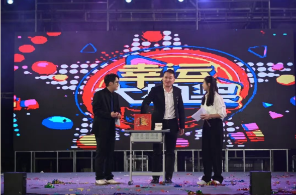 安踏7号篮球、红米运动手环、安踏羽毛球拍、自动收缩雨伞、小度音响、便捷式功夫茶具,电动小风扇等奖品依次送出,每一轮抽奖都牵动着全场观众的心。