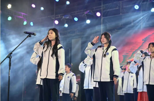 晚会伊始,揭阳市华南投资有限公司董事长张义成发表新年贺词,他代表学校董事会送上节日祝福,感谢师生筹备晚会,肯定学校过去一年在办学各方面的亮眼成绩。未来集团将加大投入助力学校发展,寄语全体干部、教师、学子各尽其责,携手谱写学校发展新篇章,祝愿大家新年顺遂、学校蒸蒸日上。