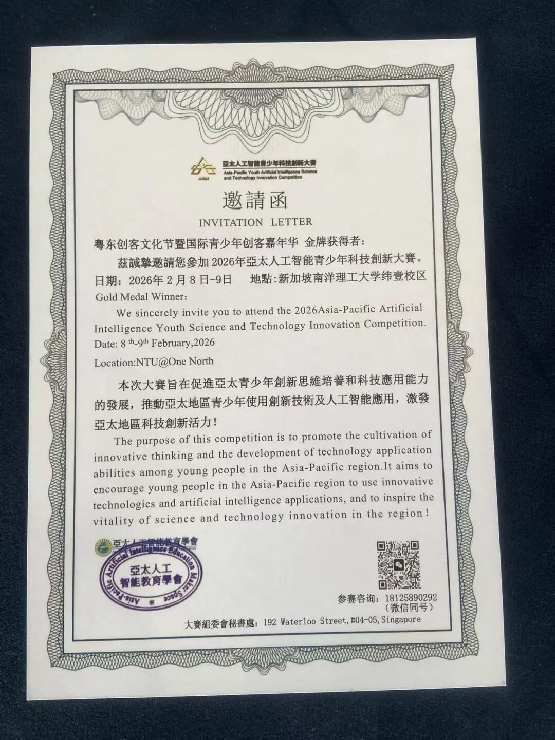 目前,我校工业机器人专业学生黄泽彬已成功入围亚太人工智能青少年科技创新大赛。