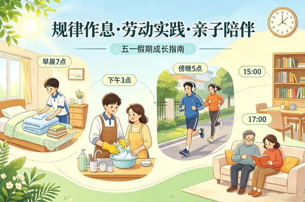 假期既是放松休憩的时光,也是亲子陪伴、习惯培养的好时机。在此,我们向您提出以下几点温馨提示,愿与您共同为孩子的健康成长保驾护航: