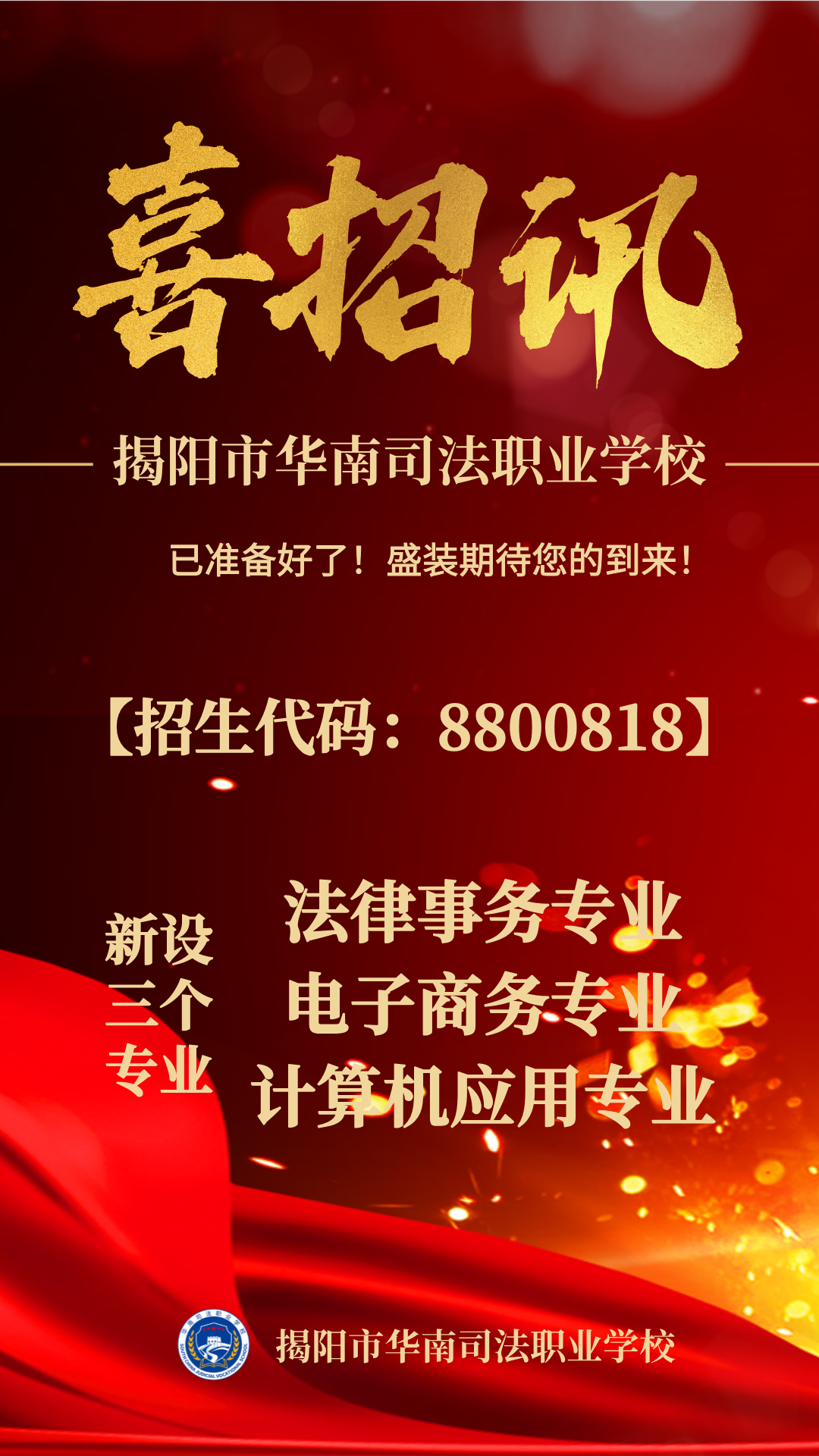 揭阳市华南司法职业学校招生工作正在有序进行中!我校将会继续推进专业优化工作,加强对新设专业的建设,切实保证人才培养质量。