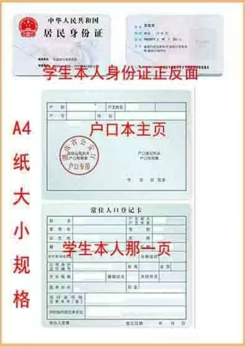 户口本原件及复印件1份(户主页与本人页复印在同一张 A4 纸上)