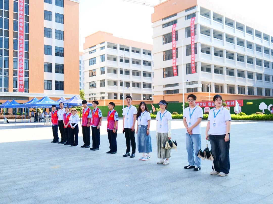 早上8点,学校的全体教职员工早已各就各位,以饱满的热情迎接每一位学子。校门口,“欢迎新同学”的红色立板格外醒目,学生志愿者身着统一红色制服,面带微笑地为新生和家长提供引导和帮助。