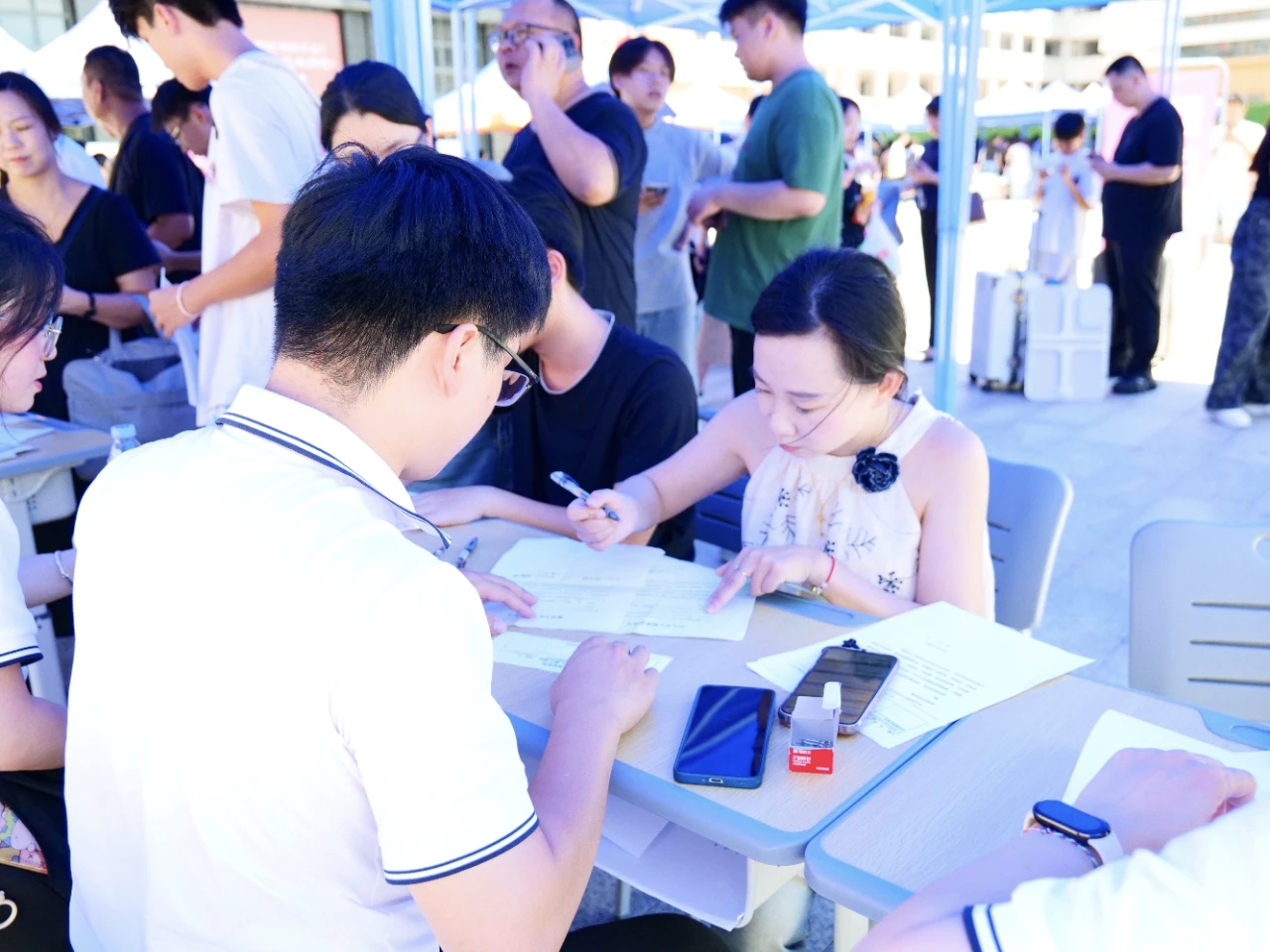 “同学,报到时记得先拿出证件和录取通知书备用哦!”“来,我帮您提这个箱子,宿舍电梯在这边!”一声声亲切的叮嘱、一次次主动的帮忙,让校园里的每一个角落都充满暖意。