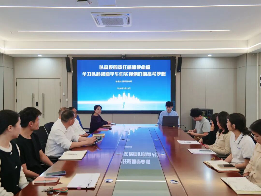 2026年3月23日,揭阳市华南司法职业学校教务处隆重召开《高考班考试分析与新学期工作会》。会议全面梳理考试数据、对标高考态势、部署下阶段管理与备考工作,为2027年广东省3+证书高职高考备考指明方向。董事长助理刘瑞华、校长仝永宁、华南高三复读班负责人徐纯刚等校领导出席会议。