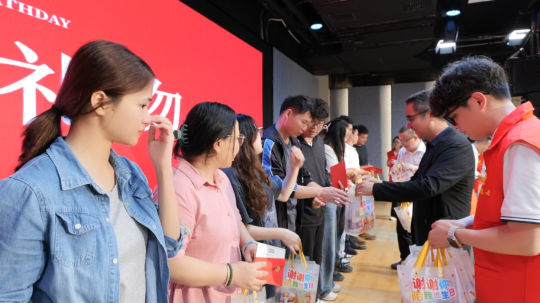 接着,学校领导依次为寿星们送上纸杯蛋糕、暖心奶茶与精心制作的生日贺卡,每一份礼物都承载着集团的关怀与美好期许。礼赠完毕,寿星们与领导合影留念,快门定格温情瞬间,笑语留存美好记忆。