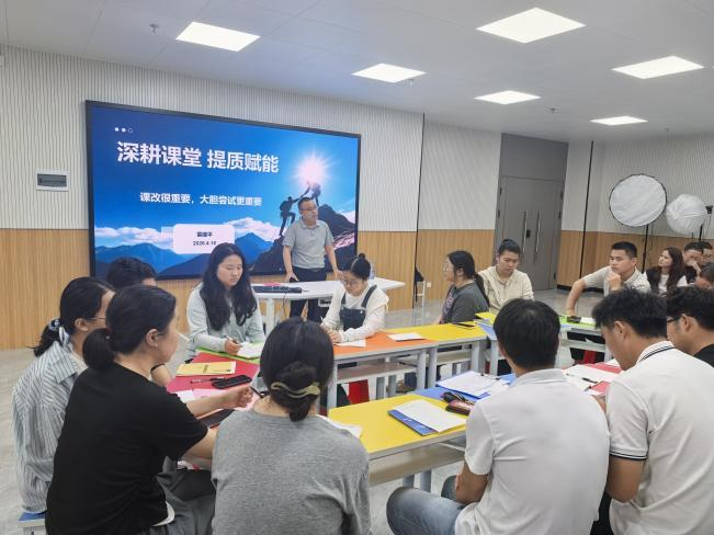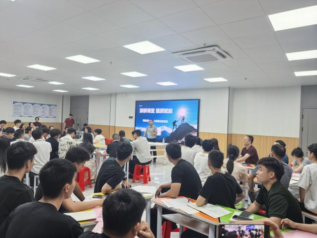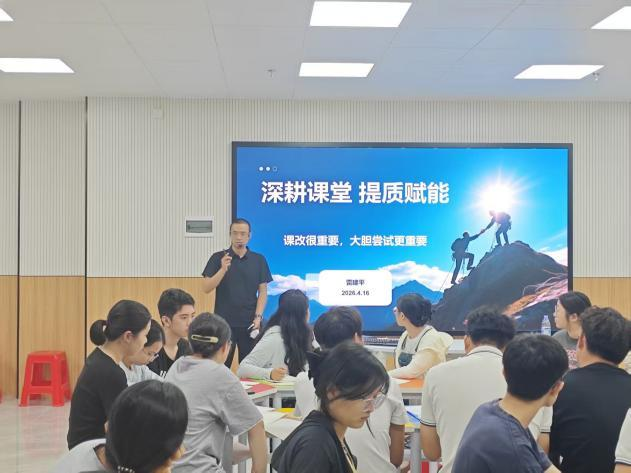 为深入贯彻落实《教育强国建设规划纲要(2024—2035年)》及教育部《关于深化职业教育教学关键要素改革的意见》(教职成〔2026〕1号)精神,积极响应国家“人工智能+教育”行动计划,4月16日,我校教研处主任雷建平带领全体教师开展“聚焦高效课堂·践行生本理念——10+30模式与三分教学法落地实操”专题培训暨分组研讨。本次活动旨在以课堂为主阵地,推动教学关键要素改革,构建人机协同、虚实结合的高效课堂新范式。